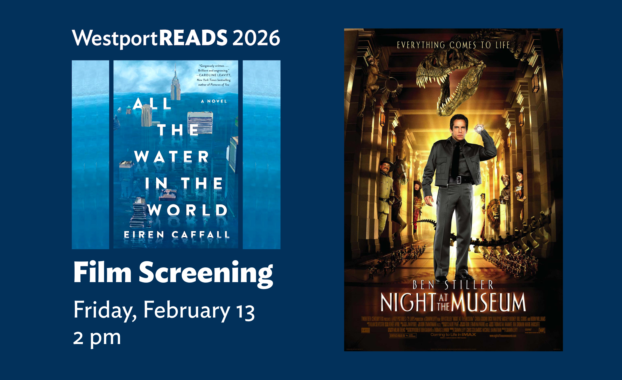 Watch the 2006 comedy "Night at the Museum," part of this year's WestportREADS film series — perfect for all ages!