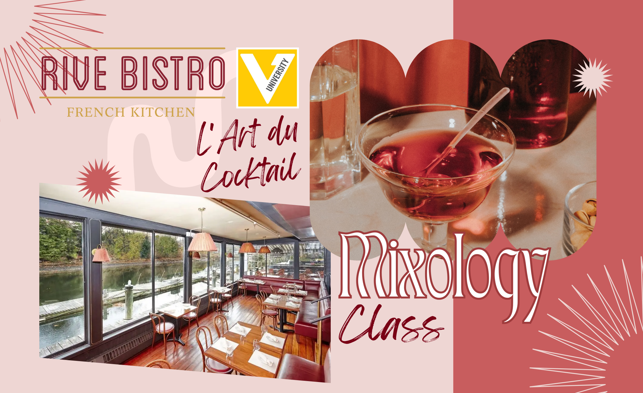 Ease into Valentine’s Day with a chic, French-inspired mixology class at Rive Bistro in Westport — perfect for date night or Galentine's Day!